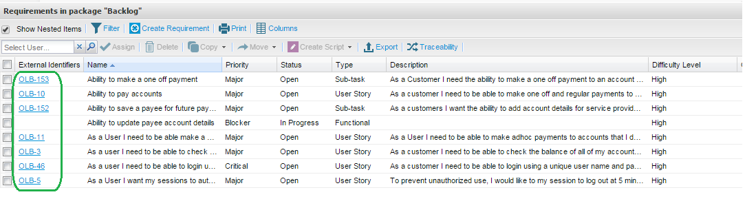 | External System | Requirements/ User Stories | Test Cases/Use Cases | Incidents/ Defects |
