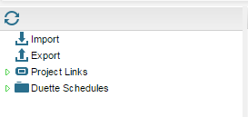 This tab holds additional resources for the application, such as importing and exporting data from external sources e.g. CSV files. Here you can also set up and configure your External System Project links.If you are using Duette, you can configure your import schedules here.