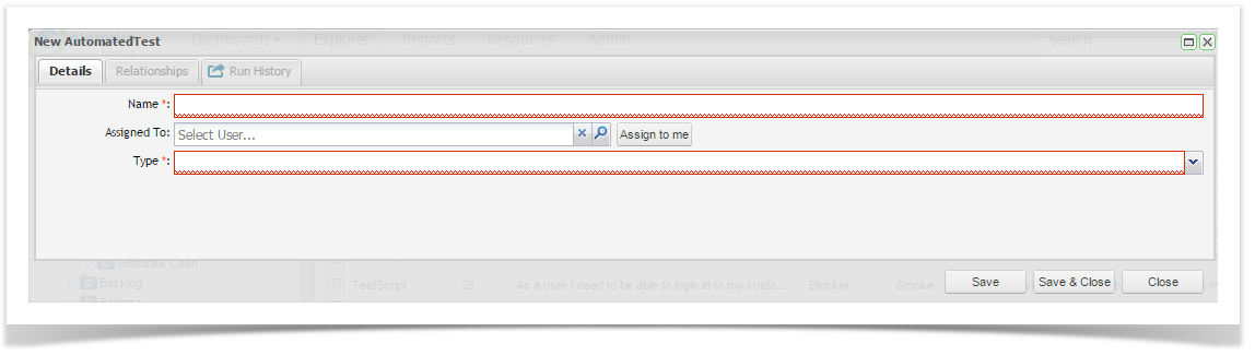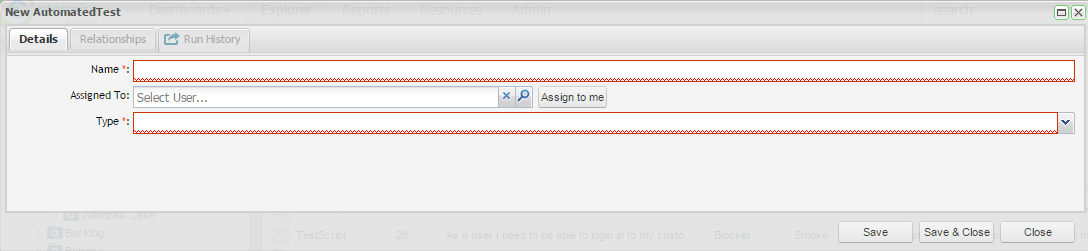 Assigned ToEnter the User name of the person assigned to the Automated Test.