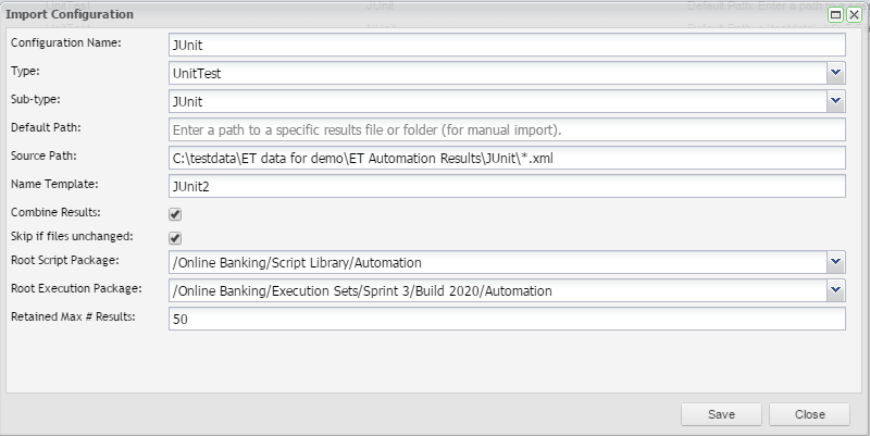 These both behave in the same manor as manually import an automated test result and filling in the "Results Path" field on screen. In addition, zip files are also supported, which effectively works similarly to configuring a folder (with the contents of the zip file treated the same as the contents of the folder).