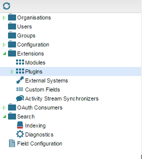 - From the Admin tab from the tree navigator, expand the Extensions folder and double click on Plugins.