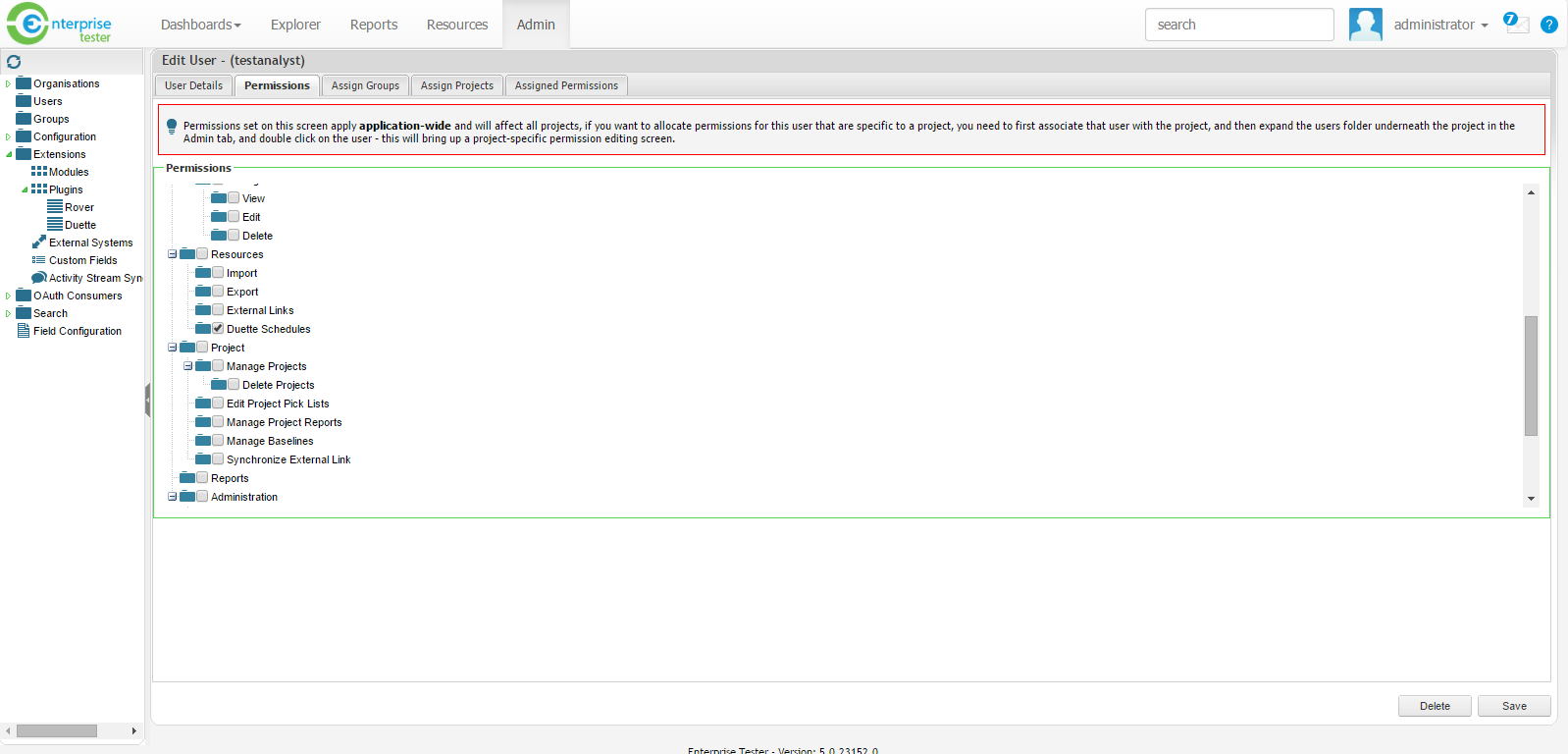 - Once the plugin has been enabled, Navigate to the Duette License screen by expanding the Extensions folder and then expanding Plugins under the Extensions folder. Double click on Duette which will now be displayed. The Duette License details screen will open.