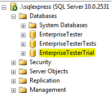 Enterprise Tester, when installed via the MSI file, will use Sql Server Express Edition 2005 to store it's data, making use of a feature of sql server express, which allows attaching a database file upon connect. While trialing and evaluating Enterprise Tester this provides a simple set-up, which makes it easy to uninstall the product cleanly at a later date, or to apply updates.