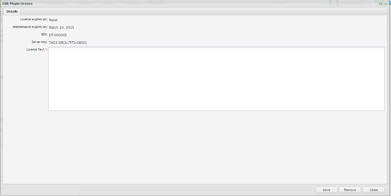 Some plugins require a license to enable full functionality. Plug-in licenses can be managed from the Admin tab.