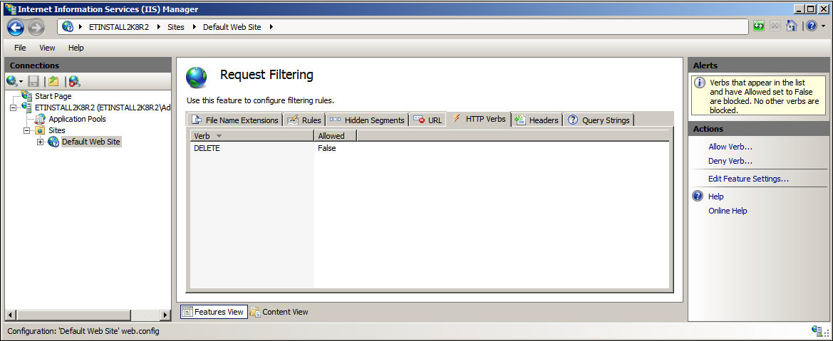clicking on the site where Enterprise Tester exists (normally "Default Web Site"), then clicking on "Request Filtering".