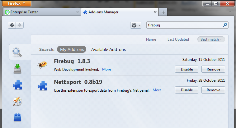 Return to Enterprise tester, and click on the "Firebug" icon in the top right hand corner of the browser.