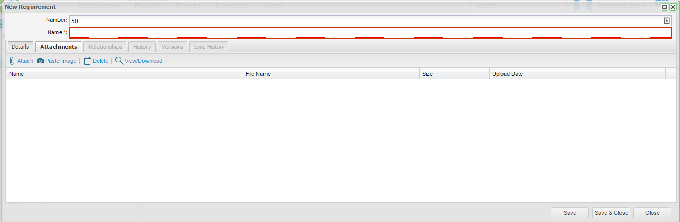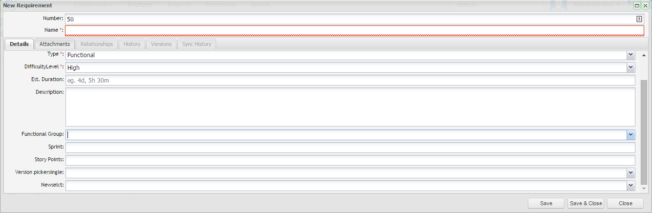 On the Details tab enter the Requirements details and click Save, Requirement fields displayed are: