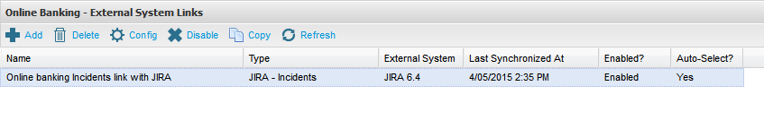 From the Admin tab, expand Extensions and double click on External Systems. From the External Systems summary grid, double click the External System you wish to create a link to. Then navigate to the Links tab. Click on Add from the tool bar.