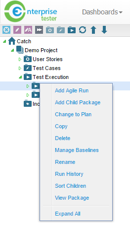 Alternatively, select an Execution folder and right click, select Agile Run.