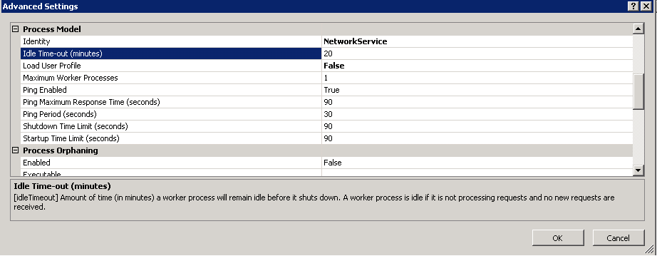 Increasing the Idle Timeout of the Application Pool