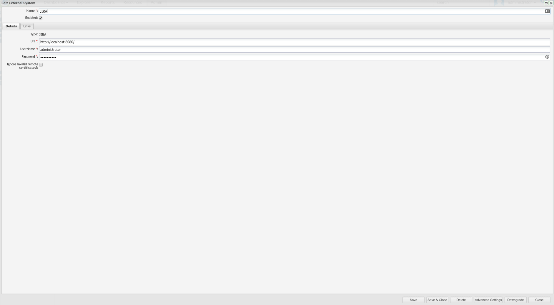 To add a connection to an external system, you will need to have Administration permissions for Enterprise Tester.