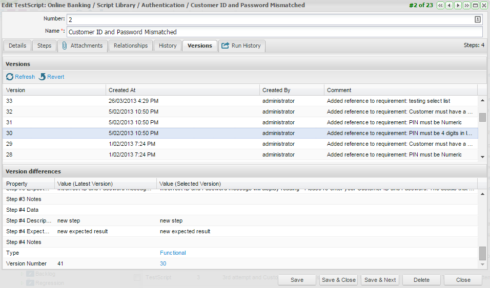Test Script Versions