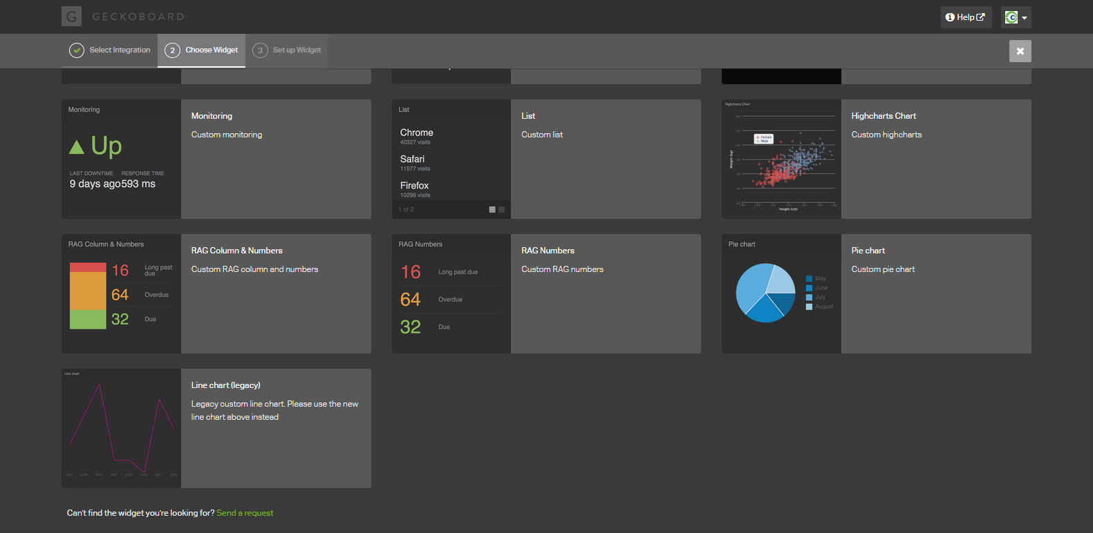 - Log into Geckoboard and create a blank dashboard