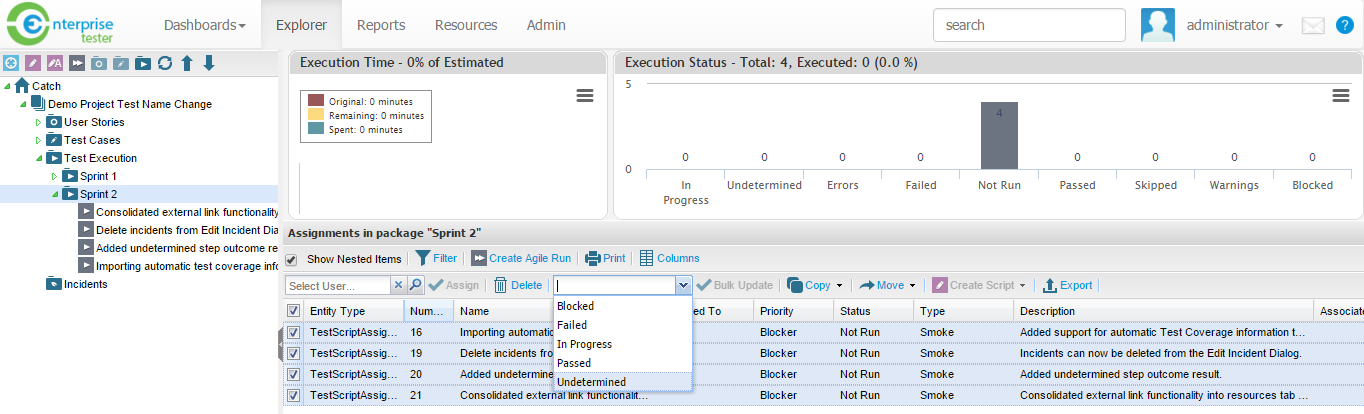 You can perform a bulk status update to test runs from the Test Execution grid.