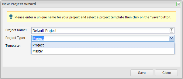 • If you have chosen Project Type of Project then select a Project Template, the following templates are available: