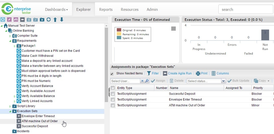 Test Execution data can also be created by dragging a single Requirement (that has Test Scripts associated to the Requirement) and dropping it directly into the Execution Sets folder or a Package within the Execution Sets folder.