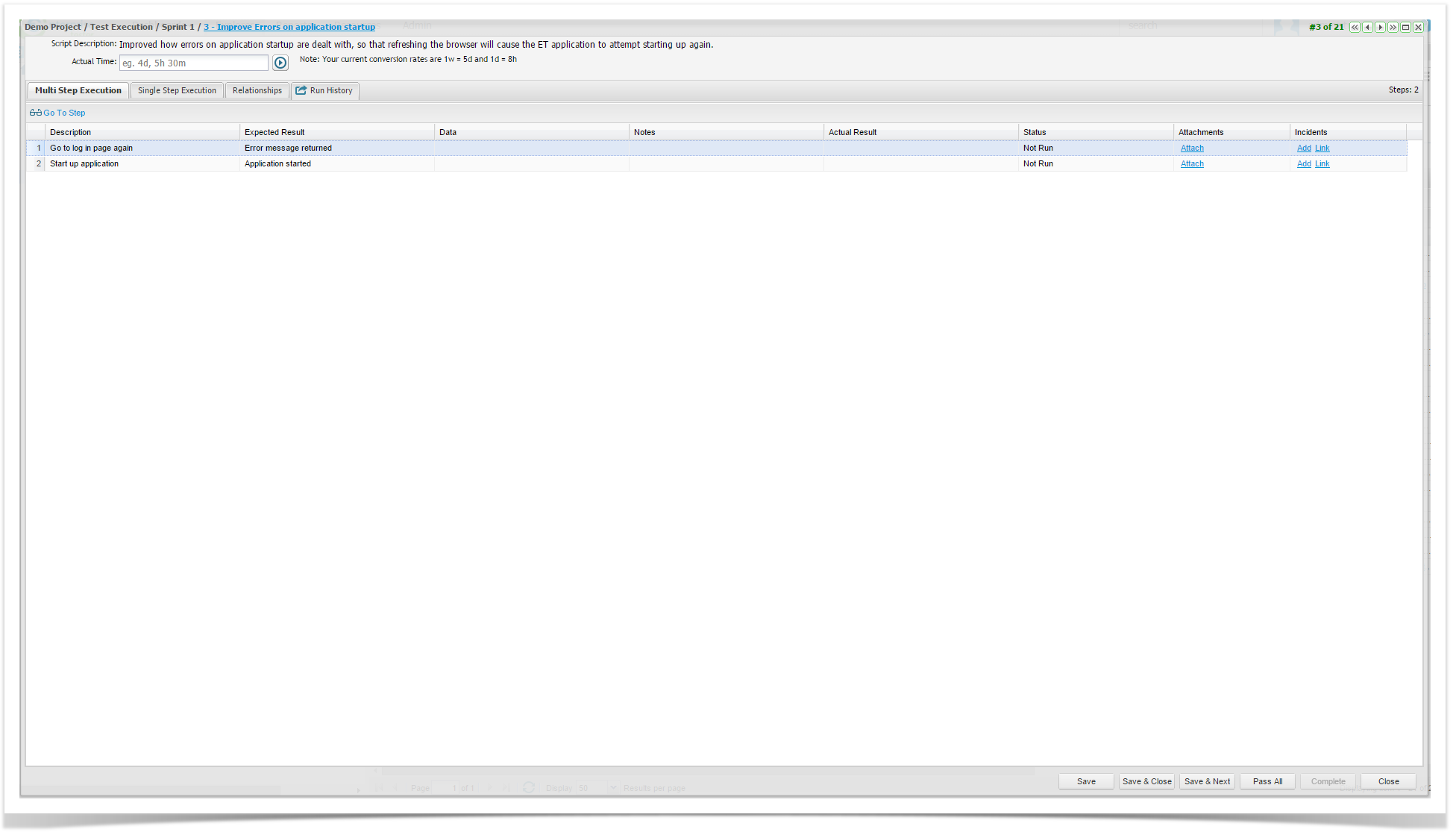 If an Incident is logged during Test Execution, a relationship to that Incident is automatically created.