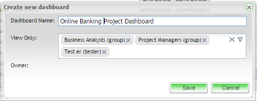 - Share your dashboard if required. In the View Only field, select the users and/ or groups you wish to provide access.