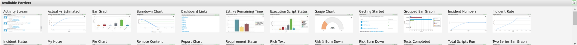 All dashboards are made up of gadgets that can be dragged onto the dashboard and then moved around as required.