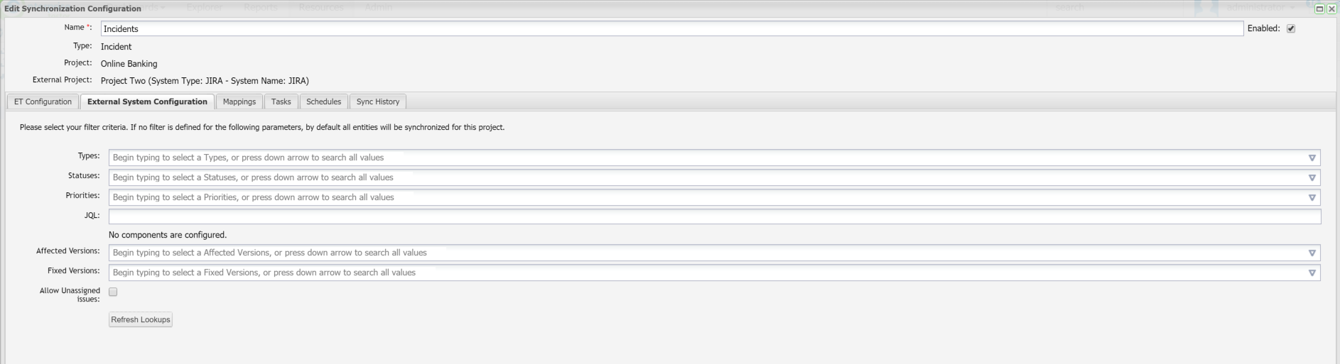 A Manual Refresh Lookups pulls up to date static information into Enterprise Tester and is required after adding or editing custom fields in external systems, or if a workflow has changed in JIRA.