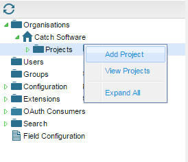 • Open the Admin tab of the tree view and expand out until you can see the projects folder.