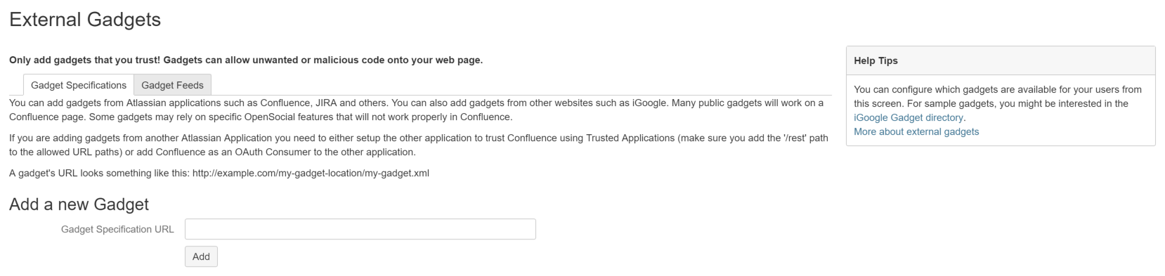 Starting with Confluence 8.0, Atlassian removed support for OpenSocial gadgets, which also includes the External Gadgets feature. As a result, this functionality is no longer available or compatible in Confluence versions 8.0 and above