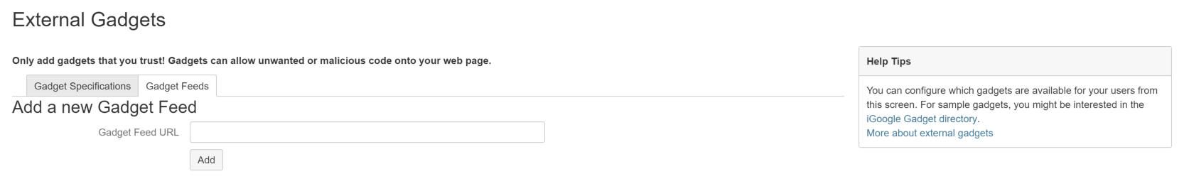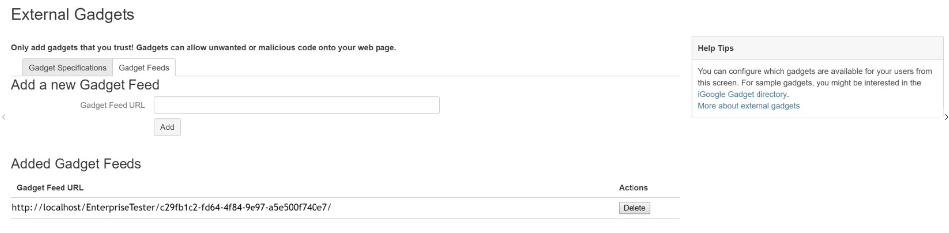 - Click the Copy gadget URL to clipboard button on the toolbar - To add an Enterprise Tester subscription to Confluence, login to Confluence. Navigate to External Gadgets in Confluence Administration > General Configuration.