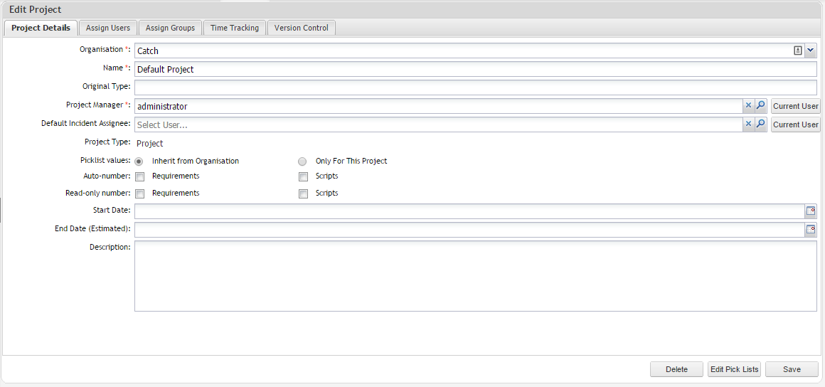 Project ManagerSelect the Project Manager from the pick list of users.