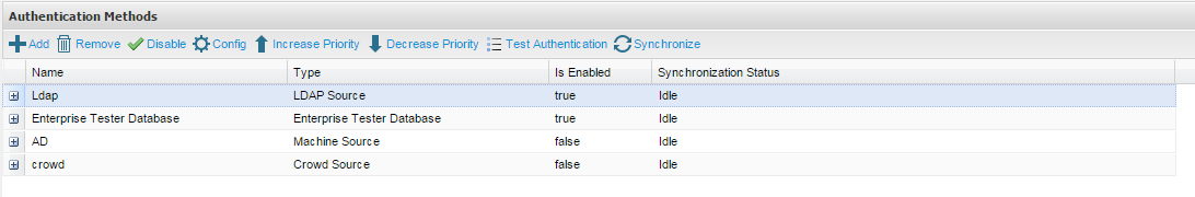 If a user cannot be authenticated against LDAP (the primary authentication mode in our example), authentication will automatically be attempted against the next method in the priority list (Machine Source). If the secondary method fails, the third method will be used and so on until the user is successfully authenticated or all methods have been exhausted.