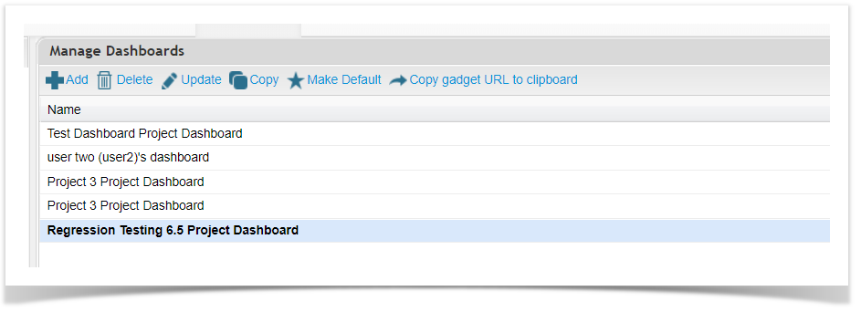 Manage Dashboards will be displayed.