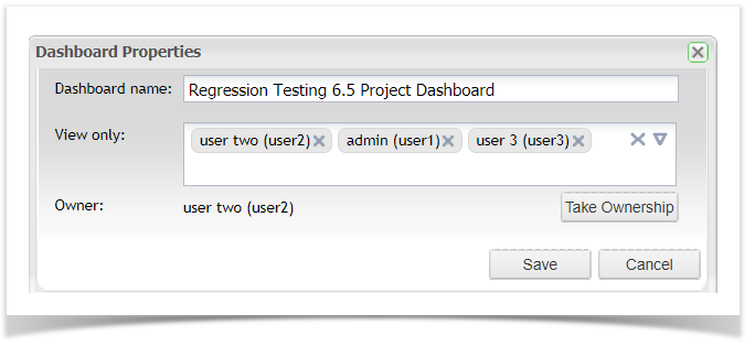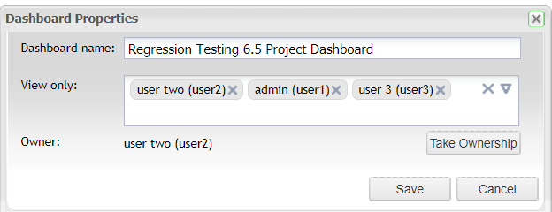 3) In the View only: field select the users or groups that you want to share the Dashboard with.