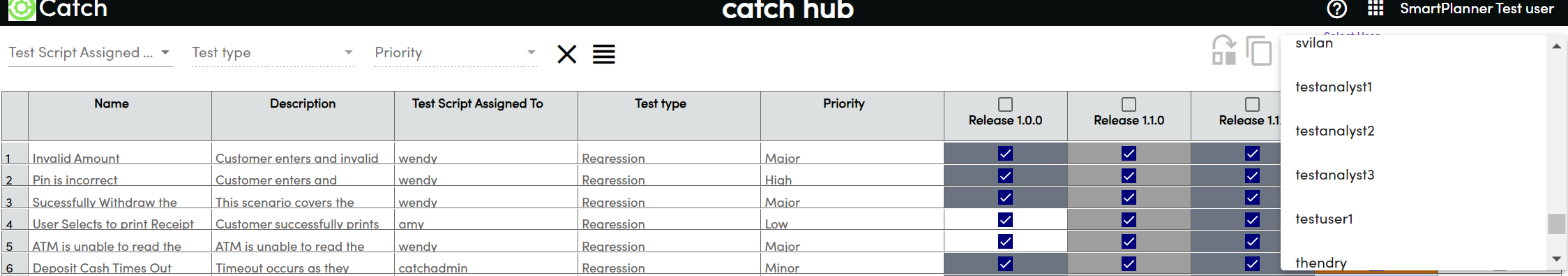 • Choose a user from the dropdown to assign the test runs to.
