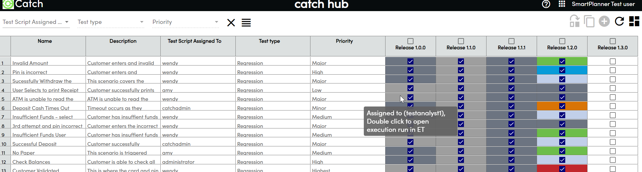 • The created test runs will appear in light grey as they are assigned to a user