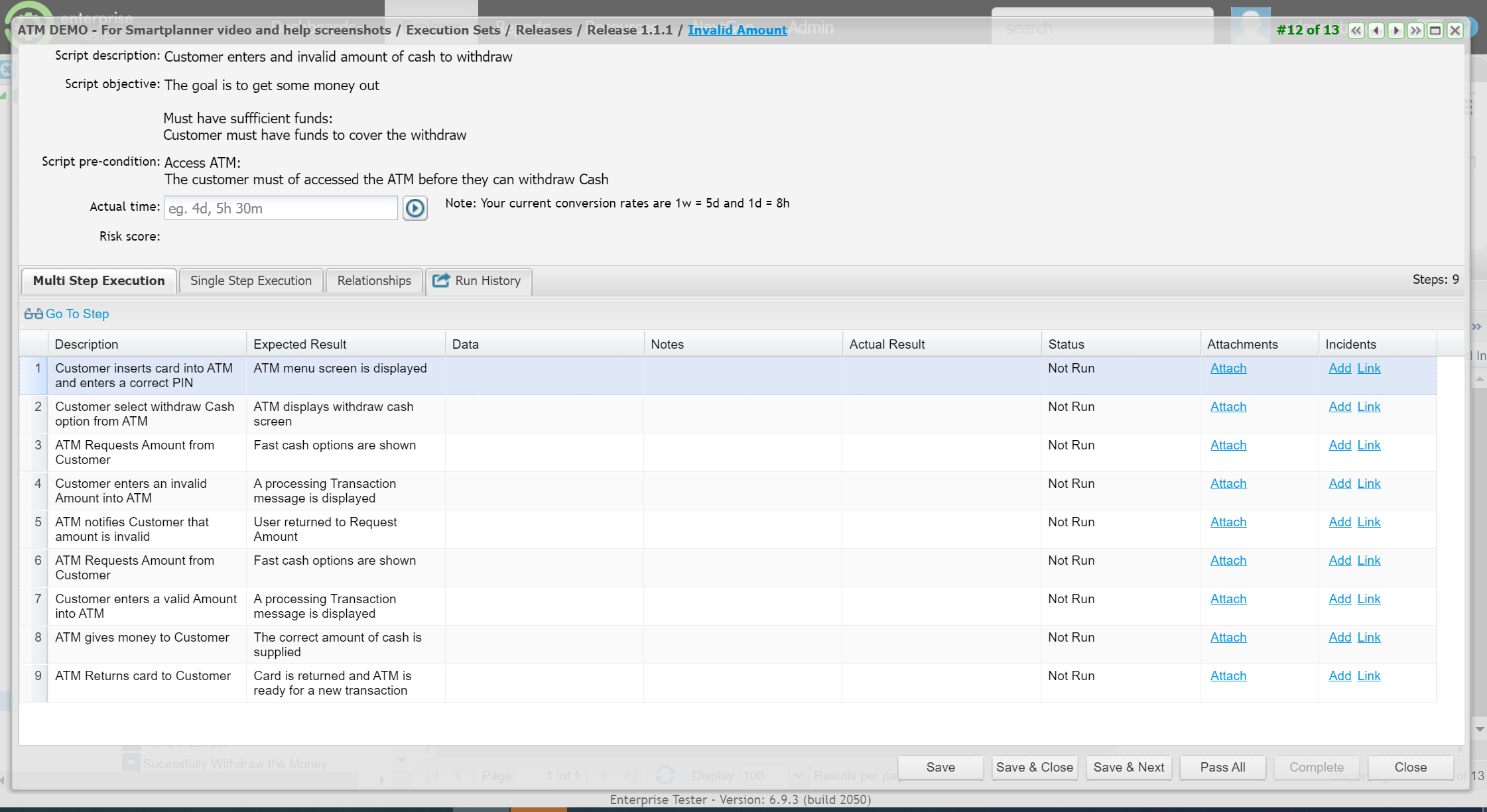 • Execution Packages: These are columns in Enterprise Tester where test runs will be created (e.g., Release 1.0.0, Release 1.1.0).