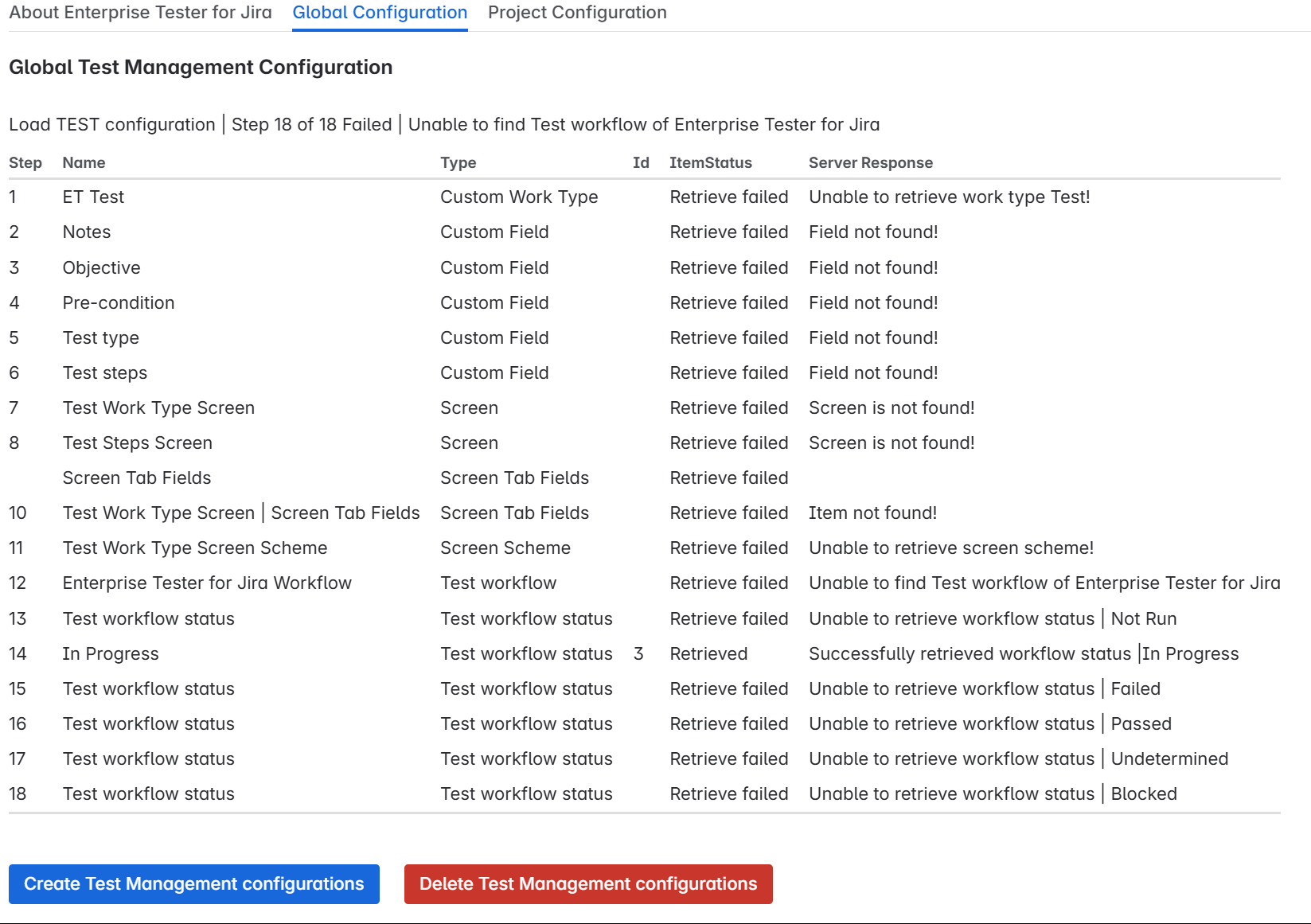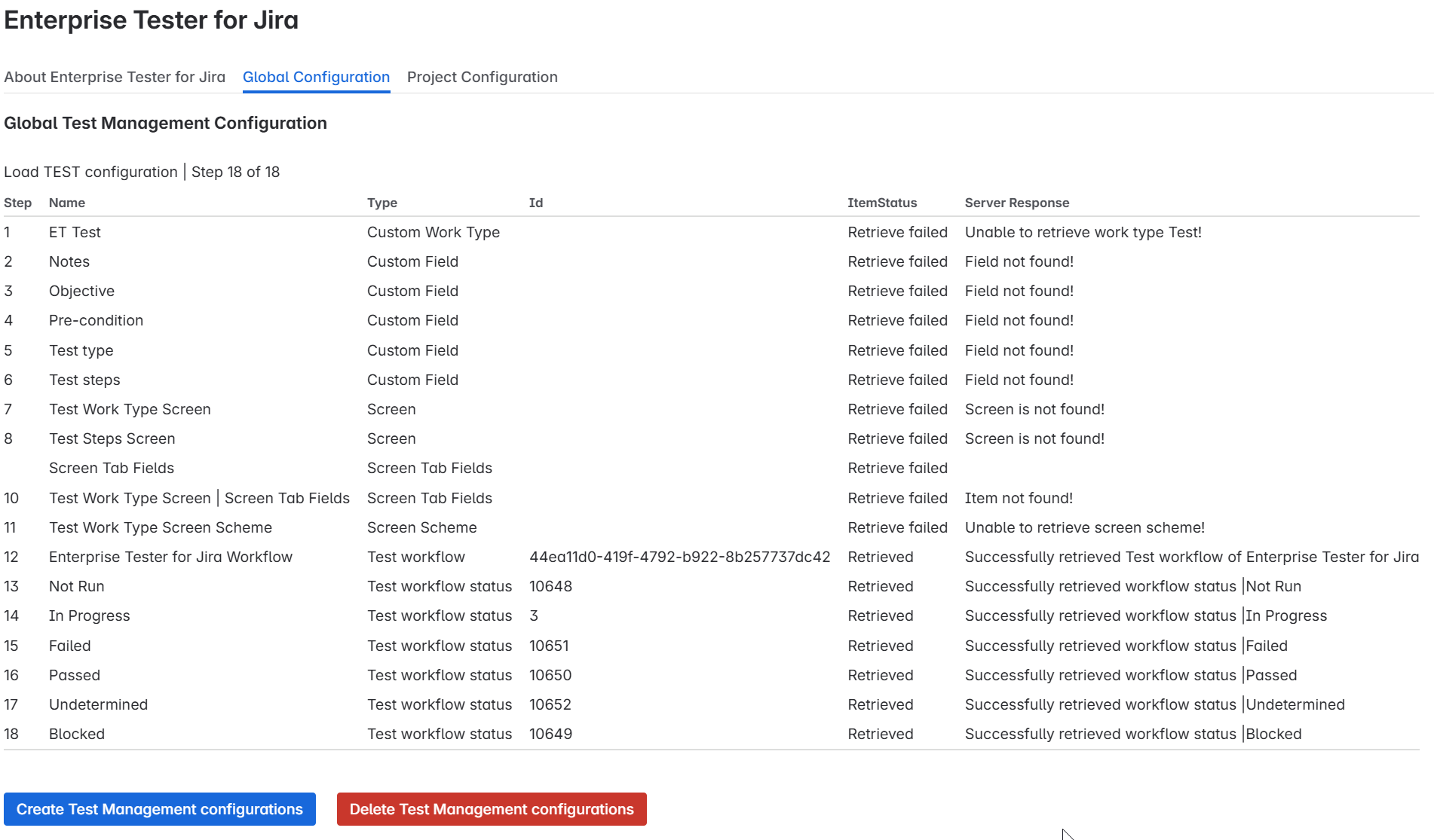 Important: You cannot delete a project’s test configuration if there are existing ET Test work items in that project.
