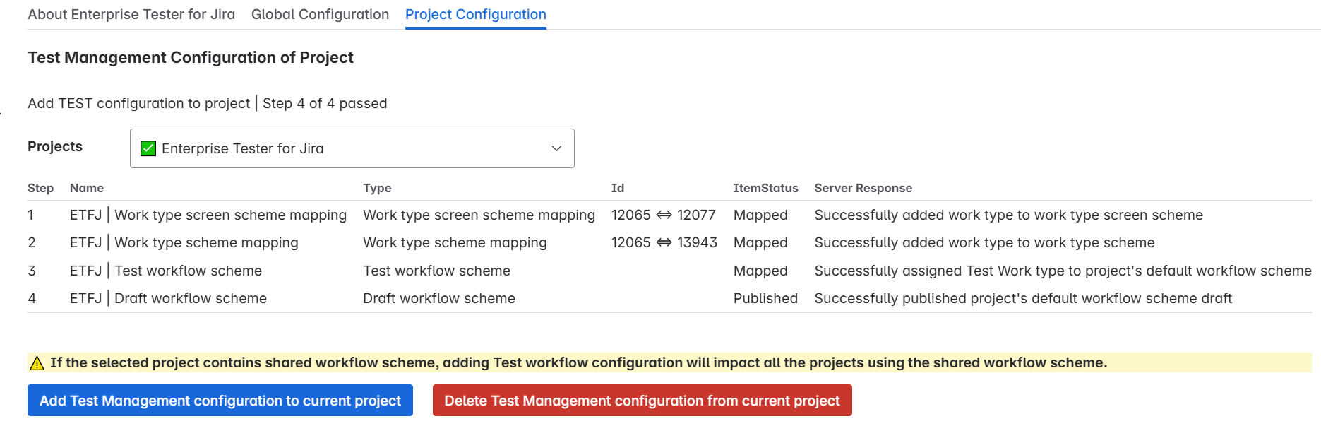 - Click Add Test Management configuration to Project to apply the test configuration to the selected project.