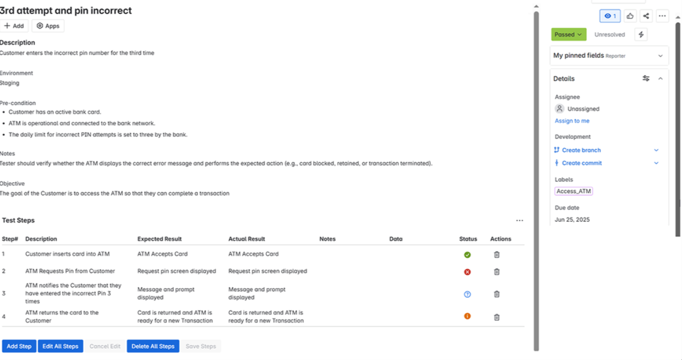 Enterprise Tester for Jira adds a structured test management layer to Jira by introducing a new issue type: ET Test along with a step-based interface for test execution. This allows agile and QA teams to: